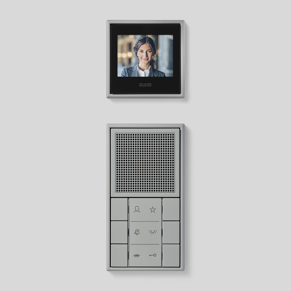 Hohe Funktionalität und einfache Bedienbarkeit: Dafür stehen die JUNG Innenstationen im Schalterdesign. Ausgestattet mit Siedle Systemtechnik und perfekt kompatibel mit den Türstationen von Siedle. Dank JUNG Baukastensystem lassen sich die Video-Innenstationen variabel montieren. Die große Auswahl an Rahmendesigns, Farben und Materialien eröffnet eine Vielzahl an Kombinationsmöglichkeiten.