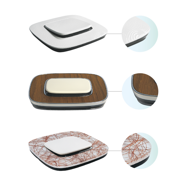 • Technopolymer: Die Abdeckrahmen aus Kunststoff werden in einem speziellen Verfahren gefertigt, das auch einen Tiefeneffekt in der Oberfläche gewährleistet.